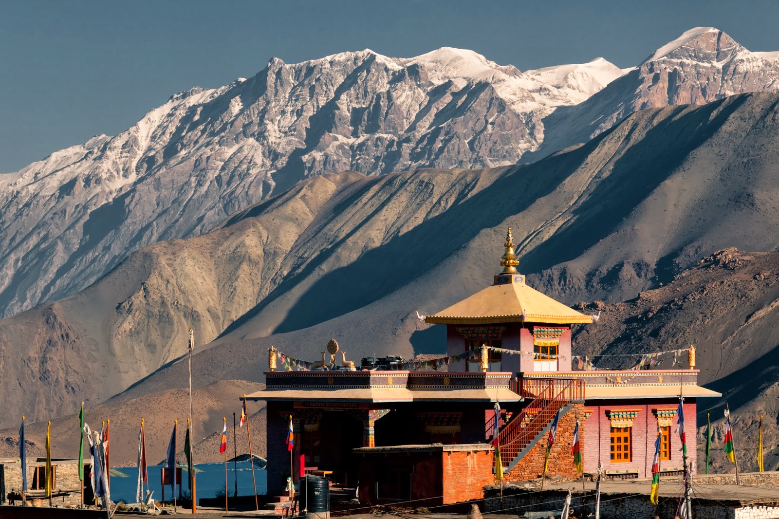Take a short flight to Jomsom and a transfer to Mustang. Embark on a private guided pilgrimage to Muktinath Temple, a revered site for Hindus and Buddhists, with the option to take a ritual bath in its 108 sacred water spouts for spiritual cleansing. Discover the beauty of Mustang with a guided exploration of its charming villages and ancient monasteries, followed by a private picnic amidst its dramatic landscapes.